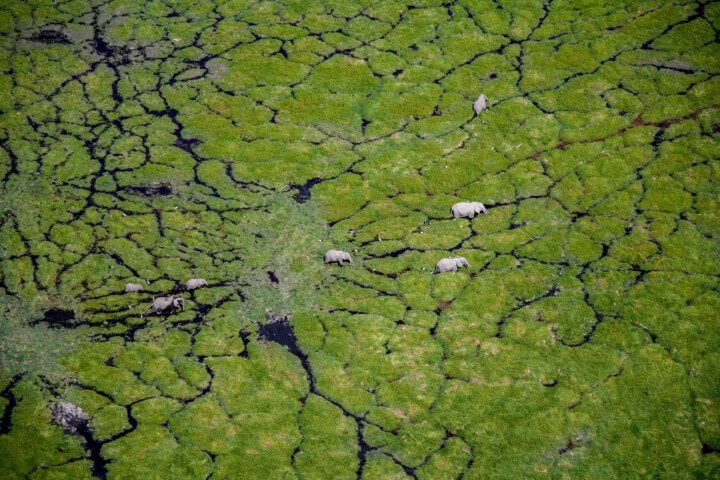 The 800-mile-long Okavango is “the river that never finds the sea,” disappearing into a remarkable maze of lagoons and channels to create the Okavango Delta. We’ll take a scenic boat ride to our next setting: the remote western corner of the Delta, the perfect place to explore on foot and by motorboat and mokoro (a dugout canoe navigated by a skilled poler). We should see bushbucks, a rainbow of birdlife, the shy sitatungas and semi-aquatic lechwe antelopes, and perhaps even buffalos and elephants. We’ll appreciate the calm solitude of this quintessential Delta setting.