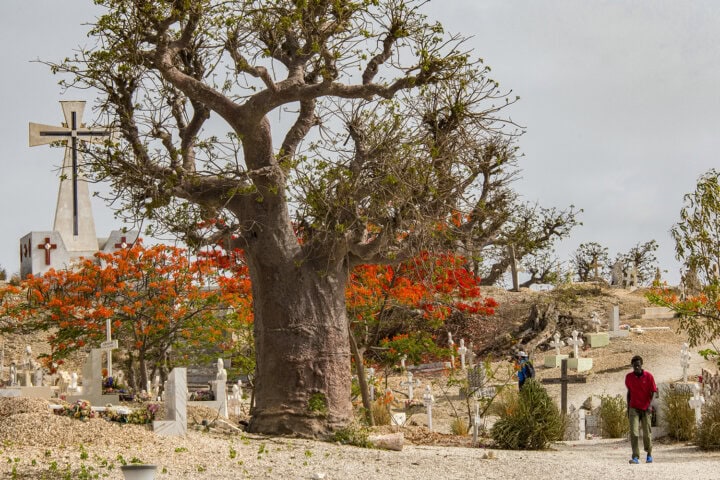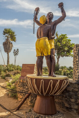 Senegalese cuisine has been influenced by the country's many ethnic groups as well as French colonization and Islam. The national dish is thiéboudiène, a one-pot meal made with fish, rice, vegetables, and spices. The national dish of Gambia is domoda, a stew of peanuts with vegetables, often including pumpkin or sweet potatoes. In Guinea-Bissau, the Portuguese influence is still seen in the cuisine, and caldo de mancarra is a popular stew made with chicken or seafood. Grilled or stewed fish, lobster, shrimp, and crab are also popular dishes across Guinea-Bissau.