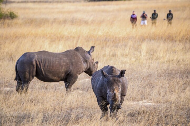 Wake up to birdsong and set out on a variety of adventures. Early risers may enjoy an optional morning game walk, a great way to experience Hwange on foot and see the small details of the bush, such as birds’ nests and game tracks. Or you can enjoy a morning or afternoon game drive (or a full-day game drive) in our shared open-air vehicles. Elephant, giraffe, zebra, wildebeest, and impala are often seen in these parts, making for an exhilarating day in the bush. June to October is the dry season and wildlife frequents the waterholes, enhancing game viewing opportunities. Enjoy a picnic lunch overlooking the Mfagazaan Pan and watch as the animals make their way across the dry plains for a drink of fresh water. A leisurely afternoon drive from pan to pan brings you back to the lodge, weaving your way between throngs of elephants. You also have the option of a morning or afternoon visit to walk with white rhinos at the newly created Ngamo Rhino Sanctuary. This thrilling experience grants us special access to see some of the first white rhinos reintroduced to this region of Zimbabwe—learn about this unique project to create a safe haven for one of Africa’s most endangered large animals. Late afternoons often include the safari tradition of “sundowner” drinks in a beautiful location at sunset. And, after dinner at the lodge, enjoy a nightcap by the campfire, sharing stories and photos of the day’s excursions. Overnight at lodge...BLD