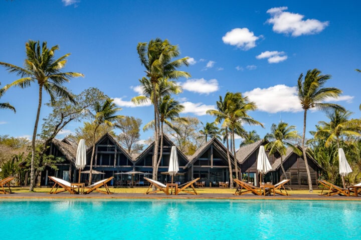 A deluxe Relais & Chateaux property in its own private wildlife reserve on Madagascar's coast, Anjajavy is a nature lover's dream. Private air-conditioned villas are scattered along a pristine beach, surrounded by dry deciduous forest, a unique tropical ecosystem that shelters a multitude of wildlife, from the common brown lemur to the Coquerel's sifaka or tiny nocturnal mouse lemur. Reptiles range from amazing native chameleons to leaf-nose bats, and the birdlife is prolific. With luck, you could see Madagascar's largest carnivore, the fossa, a member of the mongoose family. With activities tailored to your taste, enjoy abundant lemur-viewing, night walks, sunset boat rides, snorkeling, and kayaking in the mangroves. Exclusive Anjajavy Lodge is accessible only by light aircraft.