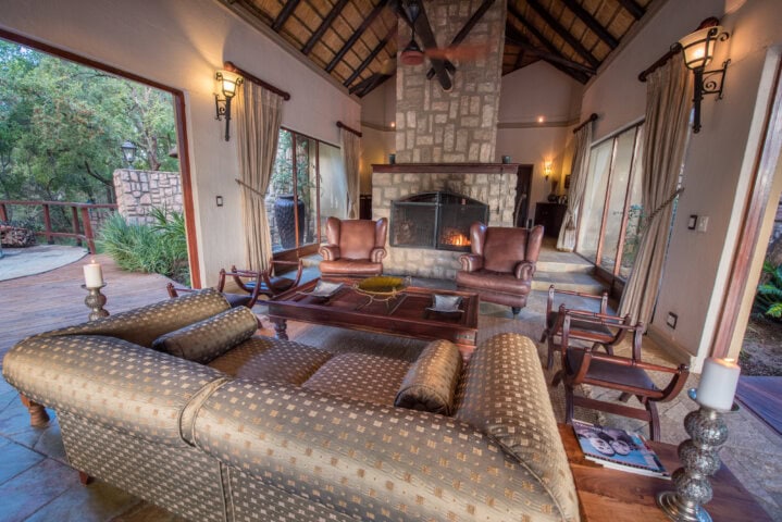 A stay at Shumbalala Game Lodge, in the Thornybush Reserve bordering Kruger National Park, South Africa, is an ideal way to experience additional game viewing while enjoying the amenities of a deluxe wildlife lodge. Set on the banks of the Monwana River, Shumbalala is an oasis of luxurious comfort in the heart of the African bushveld. Activities include morning and late afternoon game drives in search of the Big Five, bush walks in the company of an expert ranger and tracker, or simply relaxing on decks overlooking a waterhole where animals frequently congregate. The lodge caters to a maximum of eight guests in four suites, each with its own fireplace and spacious bathroom with indoor and outdoor showers.