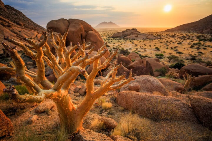 We head into the northwest of Namibia through stunning scenery to Kaokoland, one of the most remote, wild, and marvelously unique areas of the country. Along the way, we'll visit an authentic Himba settlement. The semi-nomadic Himba are one of the last traditional peoples of Namibia, and we'll have a unique opportunity to learn about their beliefs and way of life. Your Trip Leader's presence and previous contacts with this community will ensure us a welcome as a “friend of a friend.” There has been virtually no modern influence on these communities, which makes for a fascinating cultural exchange. We'll continue through the Kaokoveld to the Hoanib River Valley. At our accommodation, Hoanib Valley Camp, we can enjoy some time to relax before a sundowner drive. Overnight at Hoanib Valley Camp...BLD