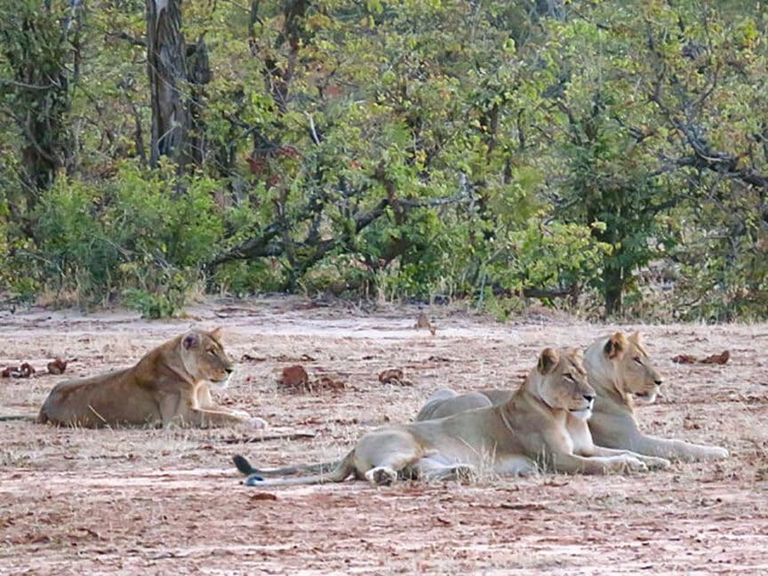 While we were all sad to leave our wonderful remote camp in the desert, our mood soon changed as we arrived by bush flight into Victora Falls. After a lovely walk viewing the famous cascade of water with its ever present rainbows, we drove to Zambezi Sands, located on the shores of the mighty Zambezi River inside Zambezi National Park. On the way, we came upon a pride of lions hanging out right next to the sandy road—what a sight!