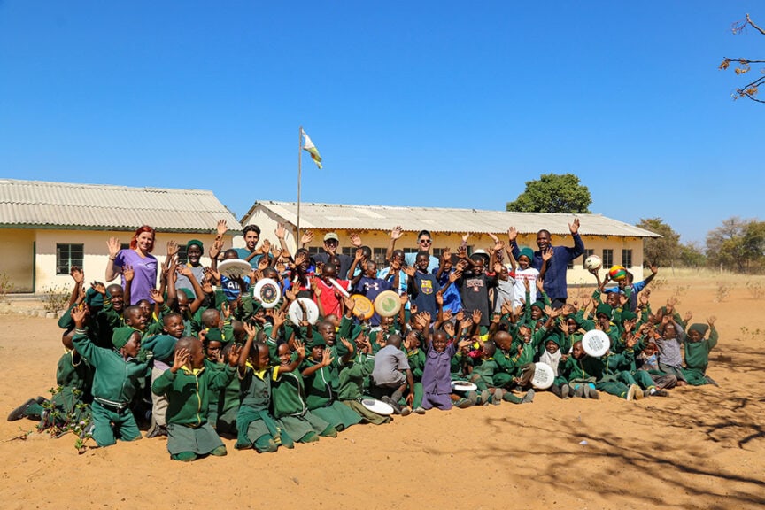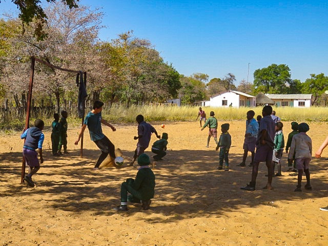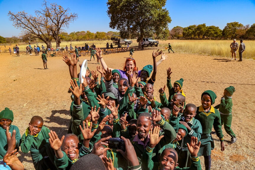 While we thought nothing could top that experience, we had the opportunity to visit St Joseph’s school on the border of Hwange National Park, which turned out to be one of our entire group’s favorite activities. We shared in the children’s infectious joy while playing soccer and frisbee, and while hearing them sing their favorite songs. We brought school and sports supplies donated by WT staff, as well as frisbees donated by the Bay Area Disc Association (WT supports this school, as well as Ngamo School farther north, through the school lunch program made possible by generous donations from WT travelers).