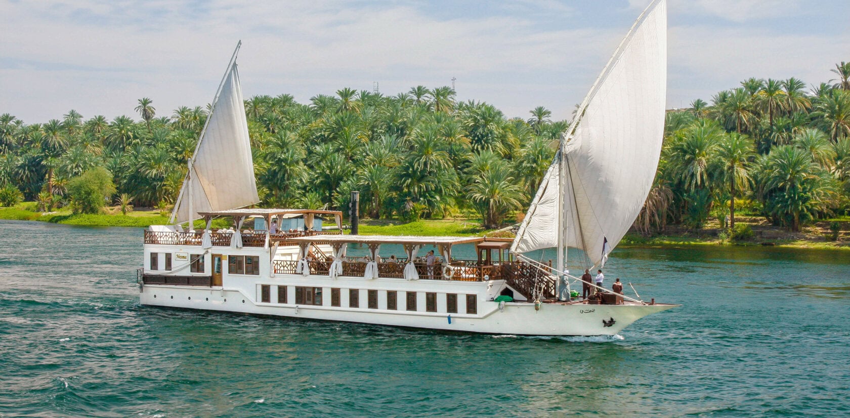 Our home base for five nights is the 100-foot dahabiya L'Orient, a traditional Nile sailboat built at the end of the 19th century and completely refitted in 2003. She is air conditioned and has two decks and four double or twin cabins and one suite with private baths. The L'Orient is sail-powered only, but will use motor-boat assistance in cases of low wind. Public spaces on L'Orient include an interior lounge and a large shaded deck where meals are served. There are electrical outlets in the cabins for charging batteries. (You will need a voltage converter and plug adapter). Meals are on board the L'Orient. Bottled water is available on board as well as tea and coffee. A selection of imported wine and beer is available for purchase. There is no corkage fee for trip members who bring their own.