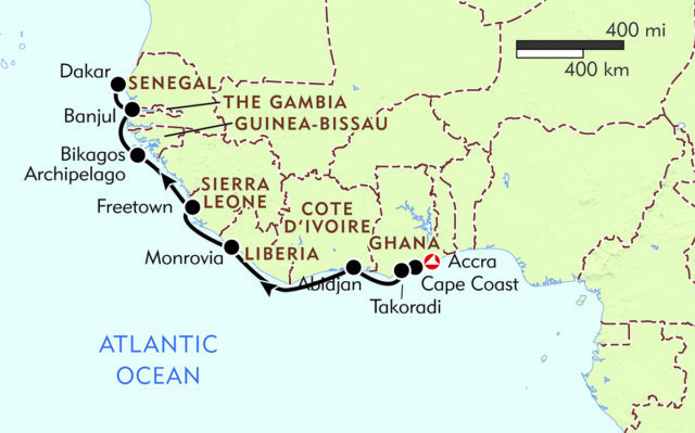Fabulous museums, a thriving art scene, and elegant seaside dining showcase Dakar's rich culture and forward outlook. The bustling traditional Medina quarter with its mosques, tea shops, and street markets contrasts with the Senegalese capital's French-influenced architecture and cuisine. Mbalax music dominates the vibrant nightlife. Traditional crafts like woodcarvings and paintings sell at Soumbédioune market, making it the perfect souvenir stop. Optional excursions feature safaris at Bandia Natural Reserve and Somone Lagoon.