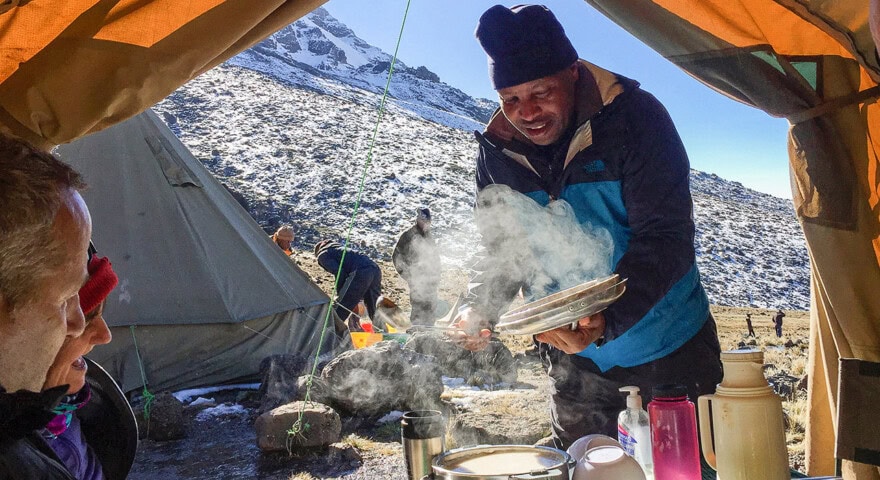 While there are certainly limits as to what can be done in such a setting, our Kili climbs have become renowned for the excellent meals served on the mountain, even at the highest altitudes. We have put a great deal of effort into combining proper nutrition with appealing and varied dishes; WT even launched the first chef training school in Tanzania over twenty years ago to create the highest standard of food quality for our high-altitude climbs.