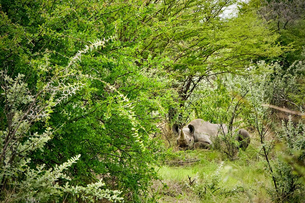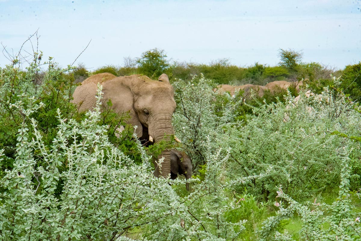 The next morning we headed into Etosha and were greeted with giraffe, zebra, baby black-backed jackal, elephant (with babies!), and a rhino with her calf. It really is an exciting time to safari, as each new baby you encounter is a sign of a thriving ecosystem full of life in what most people would assume would be a barren landscape.