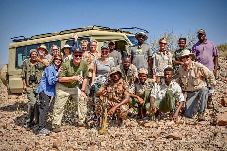 It was an absolute thrill to join WT’s recent Special Event in Namibia. These events bring our clients together with renowned experts—in this case the scientists and conservationists who have played such a vital role in protecting Namibia’s extraordinary wildlife. We had days of fascinating presentations and wildlife viewing, from the big cats at Africat in Okonjima to Etosha National Park. It is an amazing forum for these experts to share their knowledge and passion with an engaged audience. Here, guests, speakers, and guides jumping right into the festivities.