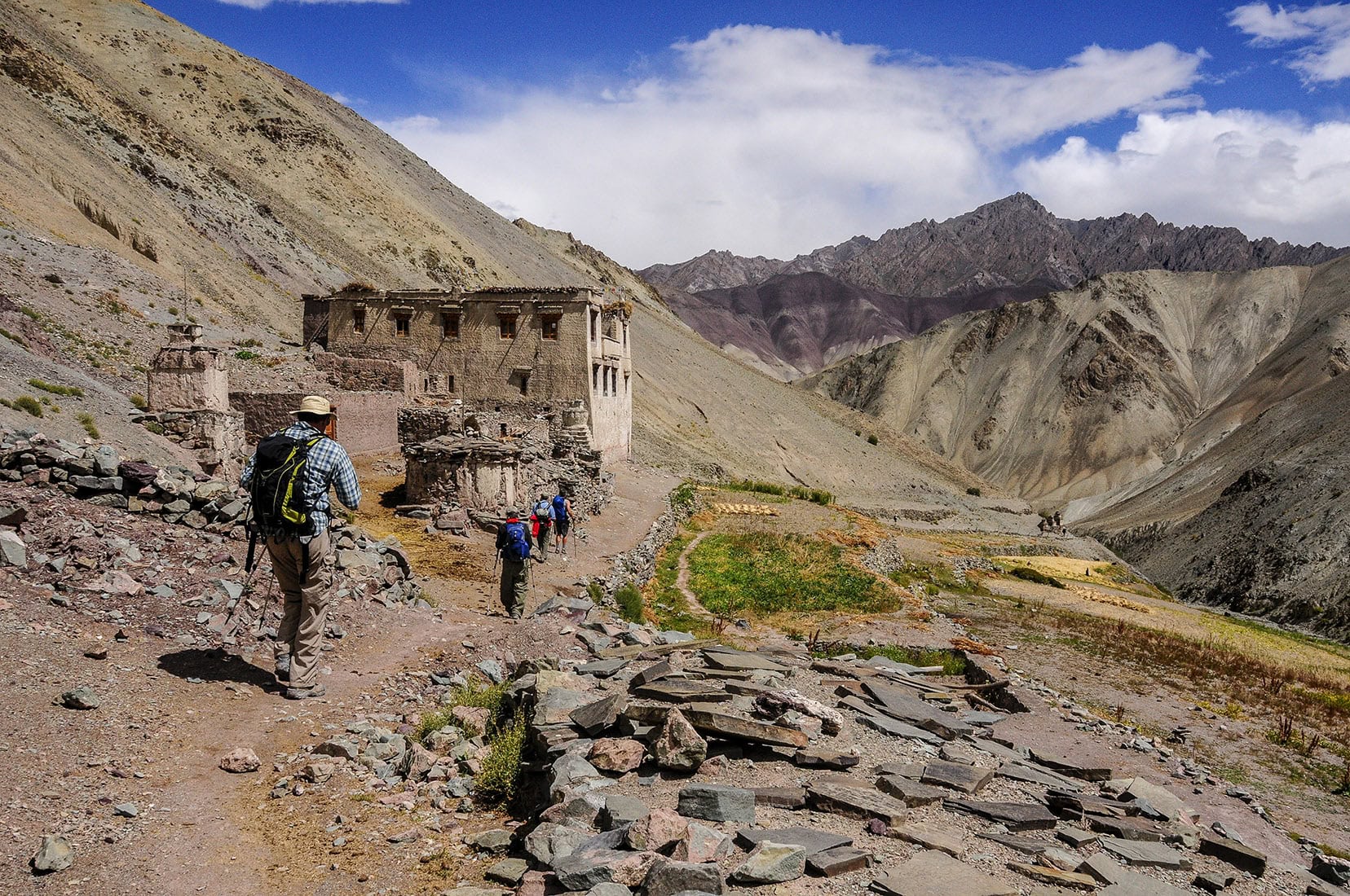 This trip is Level 3+, Moderate to Strenuous, with elevations ranging from 10,680 to 17,580 feet (on Day 11, the drive over the Kardung La Pass). Hiking times vary from 2 to 4 hours on moderate trails that can be rocky and rugged. Although you carry only a daypack on the hikes, be prepared for occasional steep ascents and descents, which at high altitudes can feel strenuous. Some days are a full day of hiking while others are centered around cultural exploration with very little hiking involved. For your own enjoyment, we recommend you make a special effort to be in good physical condition.