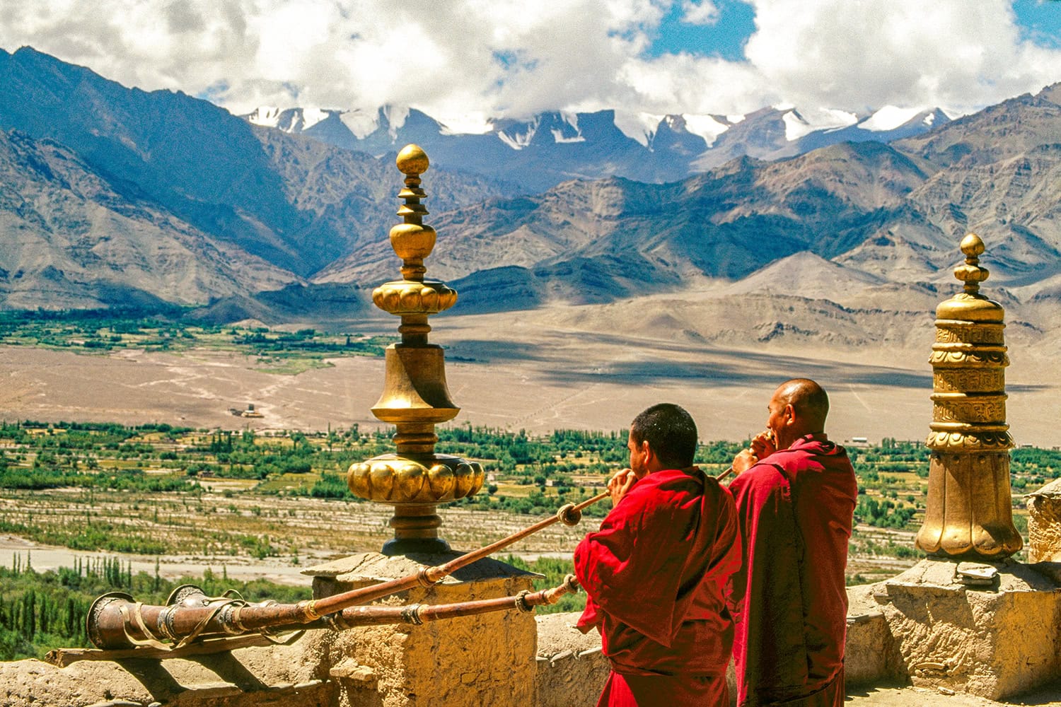 Awe-inspiring Ladakh is a vast moonscape of 20,000-foot peaks surrounding stone-built villages and an ancient cultural heritage. In this Buddhist realm hidden in the Western Himalayas, we take day hikes to traditional villages under a cobalt-blue sky, discover the grand hilltop monasteries of the Indus Valley, including lovely Hemis Monastery, built in 1630, and witness a vibrant monastic festival. Tibetan heritage is beautifully expressed here in the traditional dress of the people, in thousand-year-old monasteries clinging to cliffs, and in serpentine walls of exquisitely carved mani stones (Buddhist prayer stones). Special highlights of our journey include witnessing the Phyang Tsedup festival in a remote village and exploring the breathtaking Nubra Valley, where we cross the world’s highest motorable road, visit villages in the high mountain desert, and watch a golden sunset from atop a massive statue of the Maitreya Buddha.