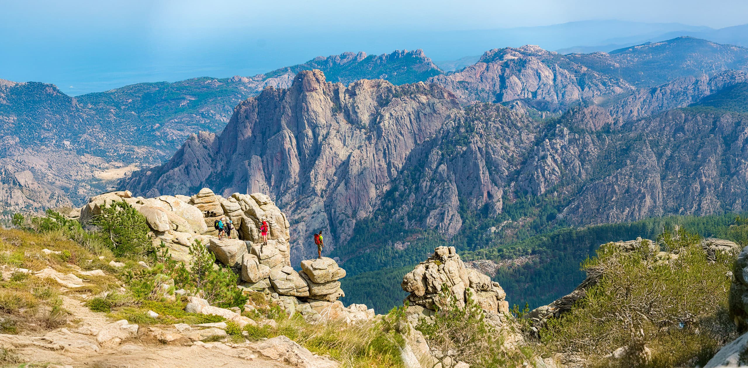 The trails are usually packed dirt, but the terrain can be rugged, with steep climbs over uneven ground and craggy rocks. This includes sections of loose scree, the occasional need to scramble and use fixed chains for aid. On some days, you will encounter sections of narrow, exposed trails. Altitudes are not high, and we carry only a daypack, but distances are long on some days, and there are many days with steep ascents and descents. During the trip, we will also offer multi-sport options such as biking and the Corsican sport of “canyoneering.” Your Trip Leader will explain the specifics with you in person, however, we recommend you have experience with those activities before the trip if you plan to participate.