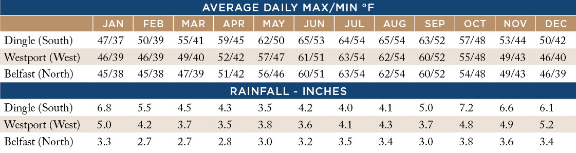 In general, from late April to early October, expect a mild climate—compared to neighboring Britain—thanks to the Gulf Stream. We time our regional adventures to the best weather and seasonal draws, from migratory birds to the summer solstice, to give you the ideal experience.
